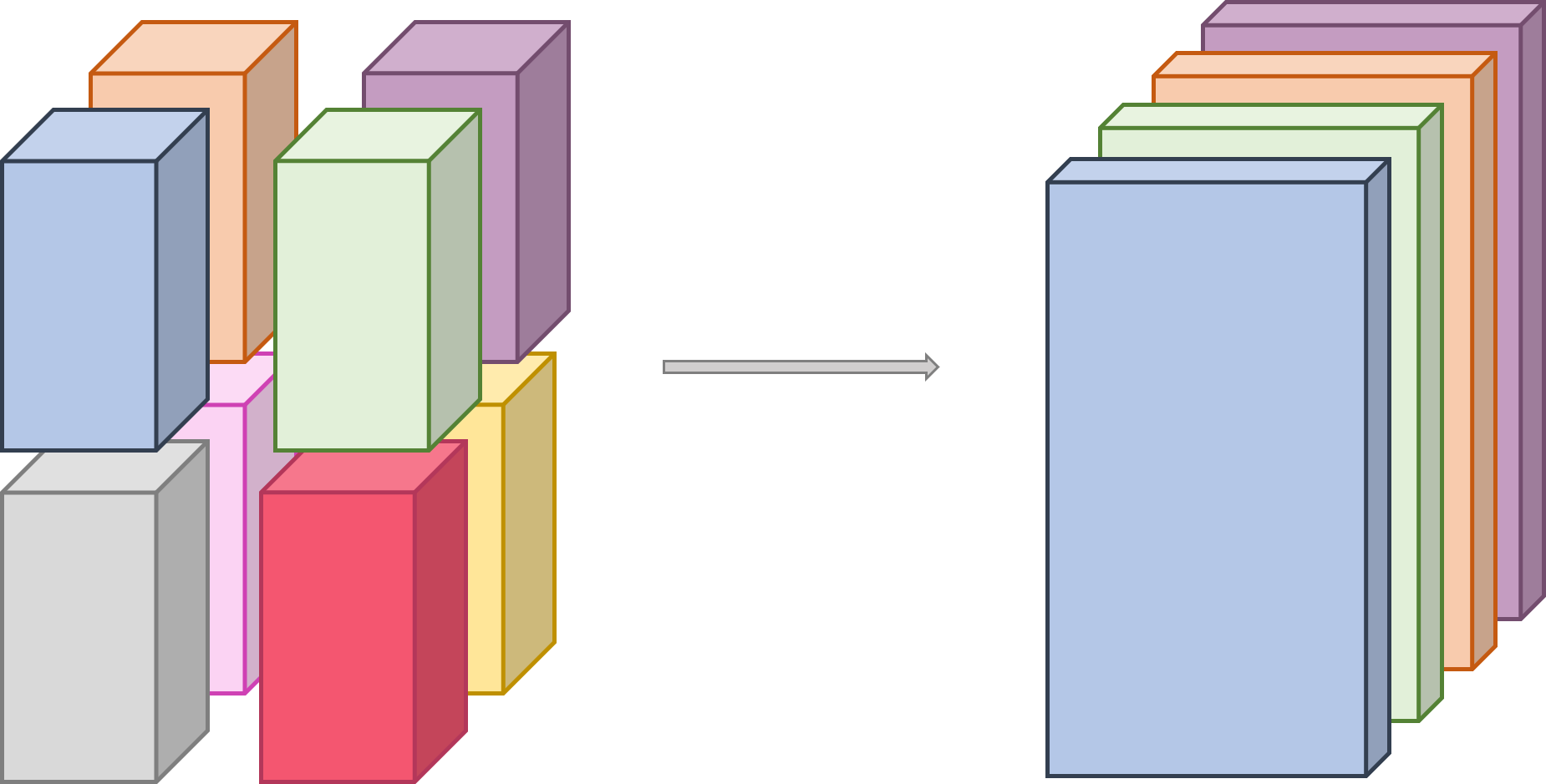 The figure below illustrates shows how to define a 3-dimensional array, distributed to eight MPI ranks organized in a \(2 \times 2 \times 2\) grid, as a self-descriptive tuple.